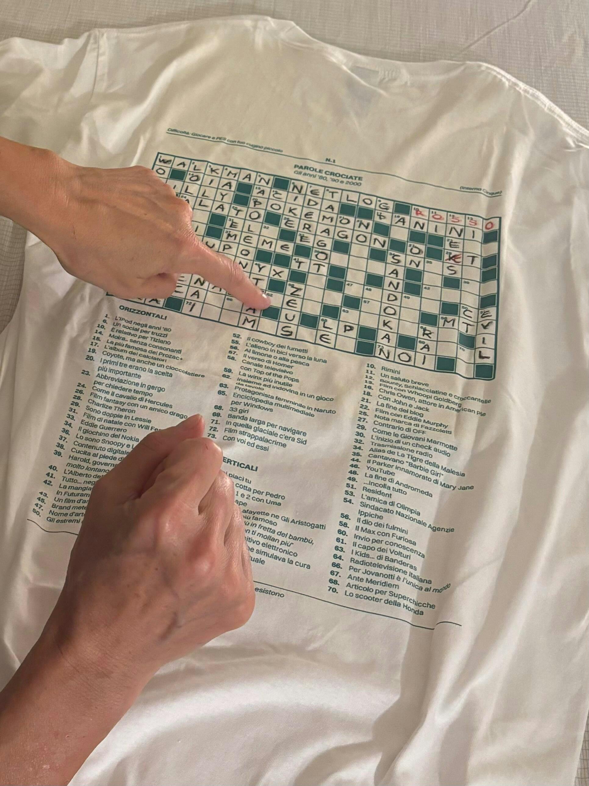 Ogni maglietta diventa unica grazie alla possibilità di essere personalizzata dalla tua scrittura. Nessuna maglietta sarà uguale a un'altra, poiché ogni cruciverba verrà completato e risolto secondo il tuo stile personale. Questa interattività rende la maglietta non solo un capo d'abbigliamento, ma anche un'espressione del tuo carattere e della tua creatività.