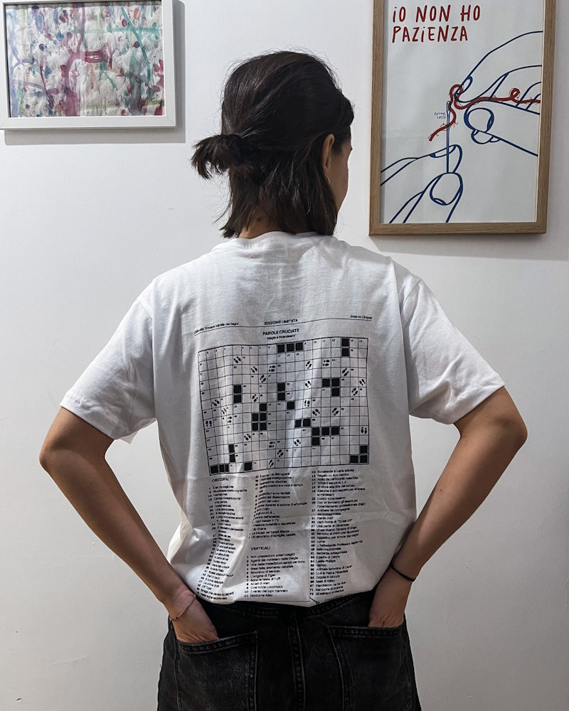 Compila il cruciverba con pennarelli o penne indelebili e trasforma la tua maglietta in una pergamena vivente, scritta di tuo pugno.